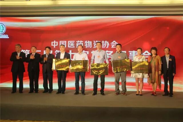 五届七次常务理事会上,食品药品监督管理总局执业药师资格认证中心原主任周福成,南京中医药大学原副校长蔡宝昌,中国医药物资协会常务副会长李振江、刘亚蜀,全国人大代表、协会副会长任武贤为新增副会长路兴林、杨贵元、李胜利、李德宏、张小玲授牌