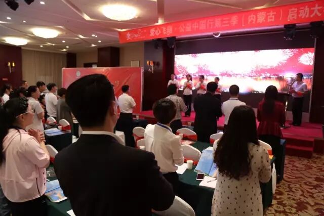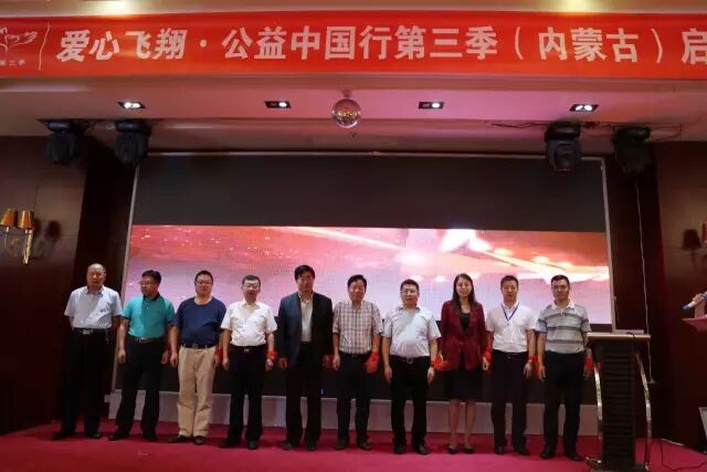 刘忠良、韩玉明、孙冬、李耀及内蒙古药店联盟核心成员单位代表、“爱心飞翔”第三季活动项目团队企业代表、当地医药连锁企业代表共同上台,按下金色按钮,数十条光束汇聚成“爱心飞翔”的翅膀,“爱心飞翔”第三季活动在内蒙古药店联盟正式启动。