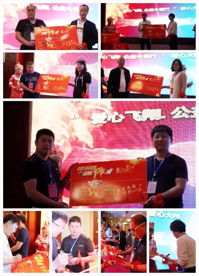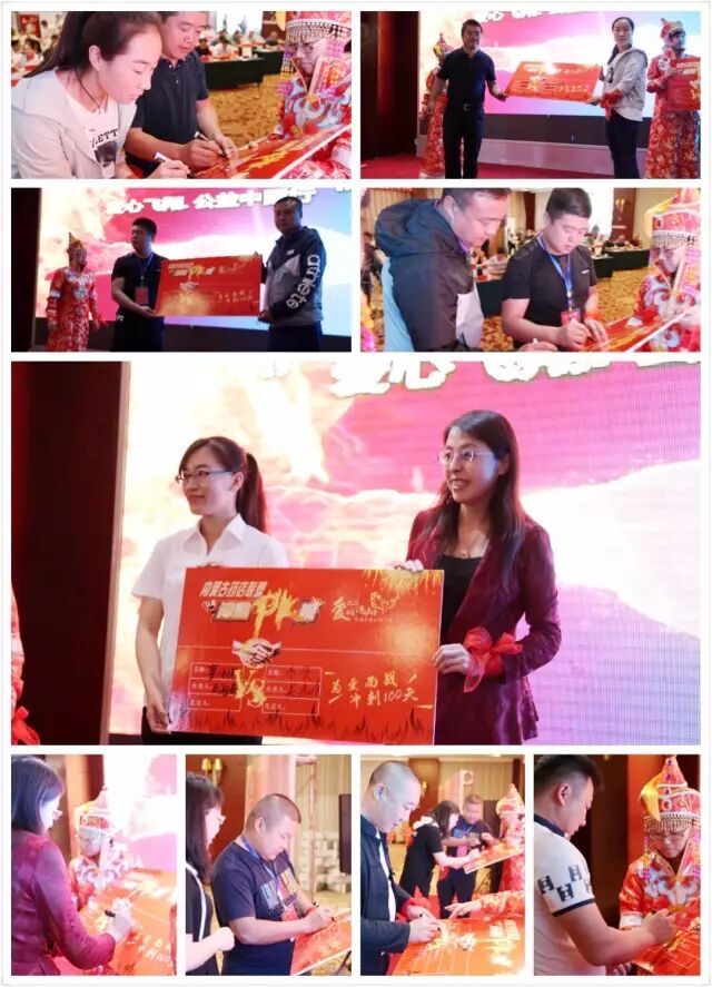李耀为内蒙古药店联盟翔之1队队长吴淑珍、翔之2队队长王振华、翔之3队队长李刚、翔之4队队长杨智分别授予队旗。内蒙古药店联盟核心成员单位在会上确定两两PK竞争组合并现场签下战书,活动现场斗志昂扬,激情澎湃。希望内蒙古药店联盟在“爱心飞翔”第三季活动中带着活动现场的热情一路勇登高峰并最终取得骄人的成绩!