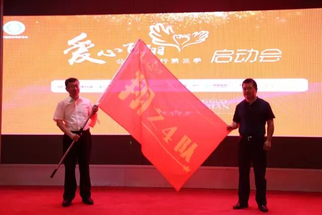 刘忠良为李耀授予内蒙古自治区队队旗,也意味着将传播公益、践行公益的责任授予内蒙古药店联盟。