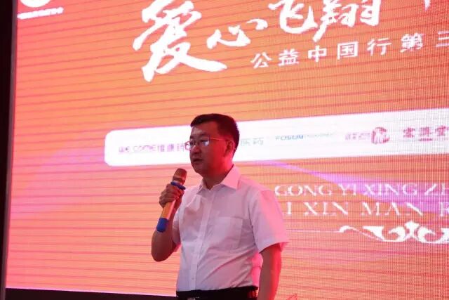 杨智代表参与活动的内蒙古医药连锁企业讲话,表示将以全部热情投身于这场爱心公益活动,在“爱心飞翔”第三季活动中拿到出彩的成绩。