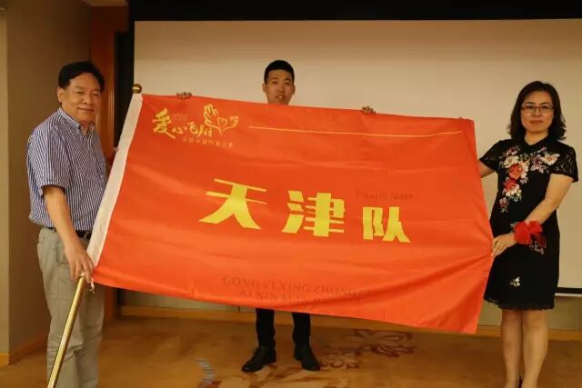 随后,刘忠良将天津药店联盟在本次活动中的“天津队”战旗授予闵丽和杨磊手中。闵丽发表讲话指出,这场全国医药同仁参与的爱心总动员中,天津药店联盟绝不掉队。“爱心飞翔”活动不仅仅是一场公益活动,更是在活动参与过程中,将自身企业与全国的医药企业共同交流、学习和成长,她激励联盟成员踊跃参与、勇创佳绩。