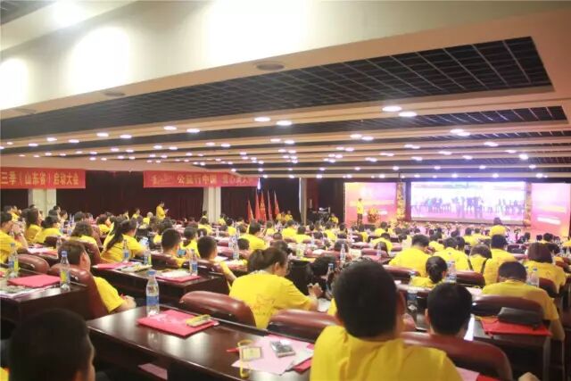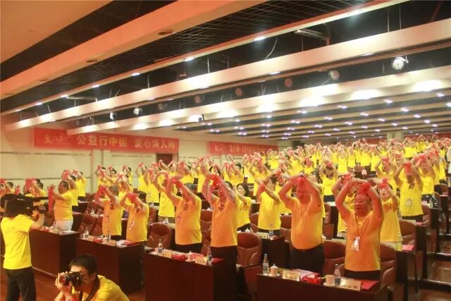 在于志刚领宣下,全场起立并高喊“爱心飞翔”第三季活动口号“公益行中国,爱心满人间”,预祝山东地区医药企业在“爱心飞翔”第三季活动中取得好成绩。