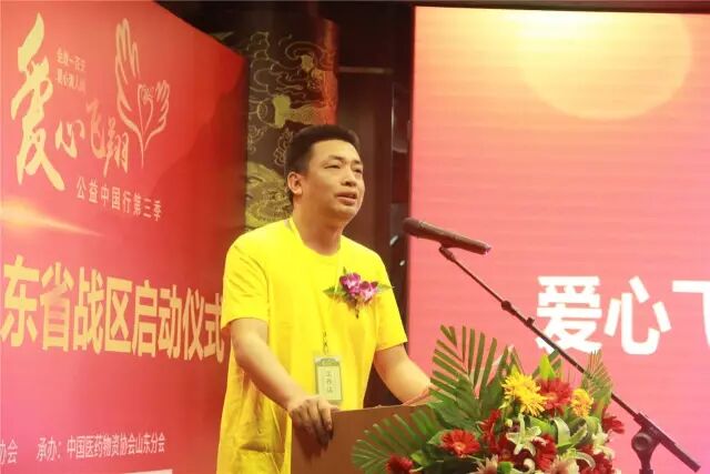 于志刚在启动会上致辞,就“爱心飞翔”第三季活动的特殊性质、爱心公益事业在社会发展中的重要作用等进行介绍并表示山东是儒家思想和齐鲁文化的发祥地,“仁以立国,孝行天下”,要求山东地区医药连锁企业延续“爱心飞翔”活动精神齐心协力发展好爱心公益事业。他指出,已有越来越多的医药企业不断加入中国医药物资协会平台,通过这项爱心公益在同行之间互相学习,谋求更好的发展。相信山东药店联盟会在“爱心飞翔”第三季活动中做出成绩,让公益事业的水流流遍泉城。