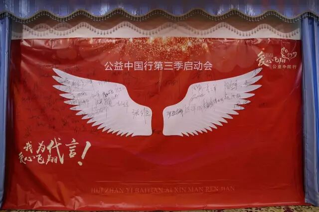 全体与会代表手挽手齐唱《爱心飞翔》主题曲,并共同做爱心飞翔手势,高呼“公益行中国,爱心满人间”活动口号。